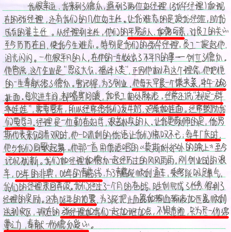 08年北京奧運會前期,我們的產(chǎn)品入選了,需要加急、加大對產(chǎn)品的檢測,記得有一次結(jié)果出來的比較晚,張總經(jīng)理一直陪著我們一起等待結(jié)果,結(jié)束之后又找車把我們安全的送回家。當(dāng)時領(lǐng)導(dǎo)對待任何事情都親力親為,讓我很受感染。各項工作都在有條不紊的進行著,讓我學(xué)到很多書本上沒有的知識,更多的是認識到自己身上的責(zé)任。