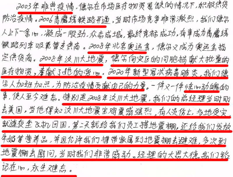 2008年,對于我們每一個中國人,是不平凡不同尋常的一年,也是沉痛的一年,更是難忘的一年。那年發(fā)生了震驚世界的5.12汶川大地震。那幾天電視天天報道災(zāi)難帶來的不幸,以致每天心懷悲痛的看著電視上的傷亡情況。一次無意識的看電視機會,我看到了寶雞電視臺采訪我家張華總經(jīng)理,我激動的喊我父母過來看,因時間久遠具體記得不太清楚了。但講述的內(nèi)容至今歷歷在目。是張總經(jīng)理以德爾公司總經(jīng)理的身份為我們四川受災(zāi)同胞捐款的事跡。當(dāng)時高三的我就覺得這是很偉大的愛國情懷和忘我無私的愛國情操,心系受災(zāi)群眾,為國家為人民貢獻自己的力量。讓多日以來沉重的心情受到些許的感動與溫暖。災(zāi)難無情,人間有愛,希望就在眼前!
