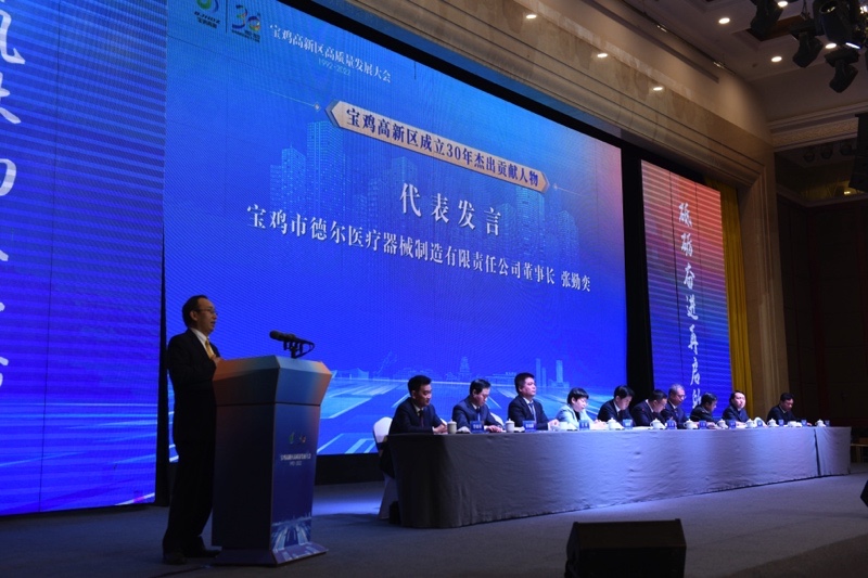 2022年11月10日,寶雞高新區(qū)高質(zhì)量發(fā)展大會順利召開。寶雞高新區(qū)成立于1992年,是國務(wù)院確定的第二批國家級高新區(qū)。陜西省委常委、副省長王琳出席會議并對寶雞高新區(qū)成立30年來取得的成績和作出的貢獻(xiàn)予以充分肯定。中共寶雞市委、寶雞市人民政府同時對寶雞高新區(qū)成立三十周年杰出貢獻(xiàn)企業(yè)、杰出貢獻(xiàn)人物頒獎表彰。寶雞市德爾醫(yī)械制造有限責(zé)任公司董事長張勤奕先生獲寶雞高新區(qū)成立30周年杰出貢獻(xiàn)人物殊榮。